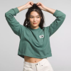 المزيج المثالي من الراحة والاسترخاء، التيشيرت النسائي المريح ذو الأكمام الطويلة ذو رقعة التراث يستخدم مزيجًا قطنيًا ناعمًا جاهزًا للذهاب أينما تريد.